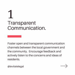 This month, Levitate Legal Managing Attorney Terri Reynolds is sharing her top 8 tips for an impactful local government. Stay tuned for a more in-depth analysis of what it takes for local governments and nonprofit organizations to maximize their impact.